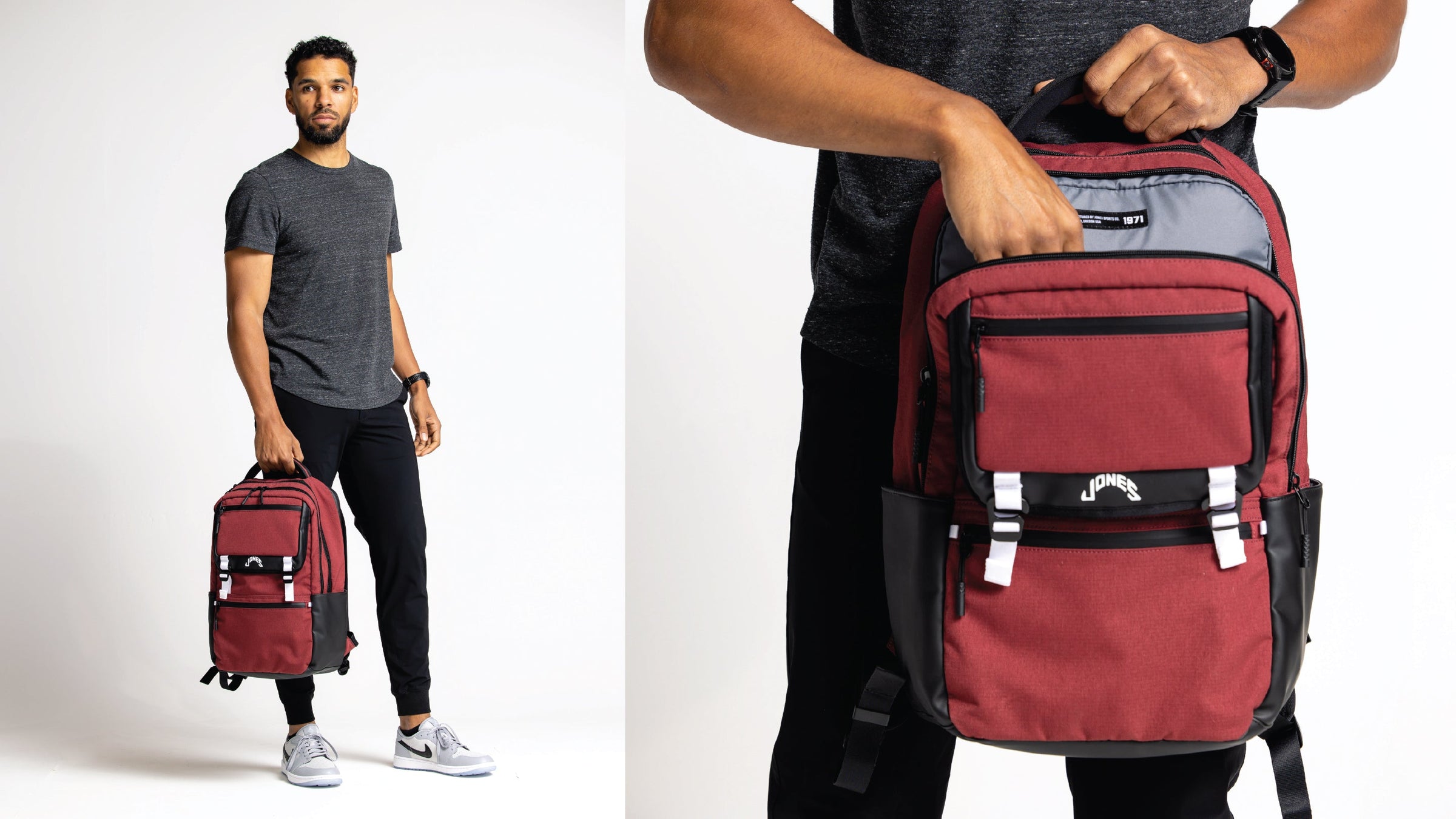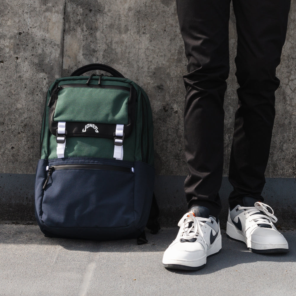 The A2 Backpack is the latest A-series for traveling professionals. With ample space and separation this pack will keep you organized for life on the go. The padded shoulder straps and cushioned back support ensures a comfortable carry when loaded with your daily necessities. The water bottle sleeves are made out of a soft-hand feel vegan P.U. material giving way to a smooth yet durable feature. The A2 is the first Jones product to offer a hidden embroidery location under the front buckled flap allowing for a sleek look while still carrying the meaning of your design.